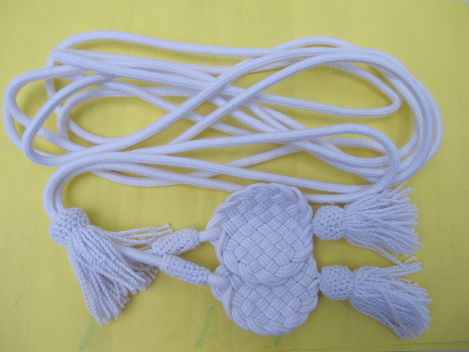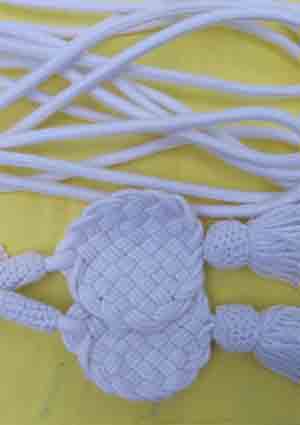 Cordon en coton blanc . Longueur 1 m 20 . Prix sur demande .