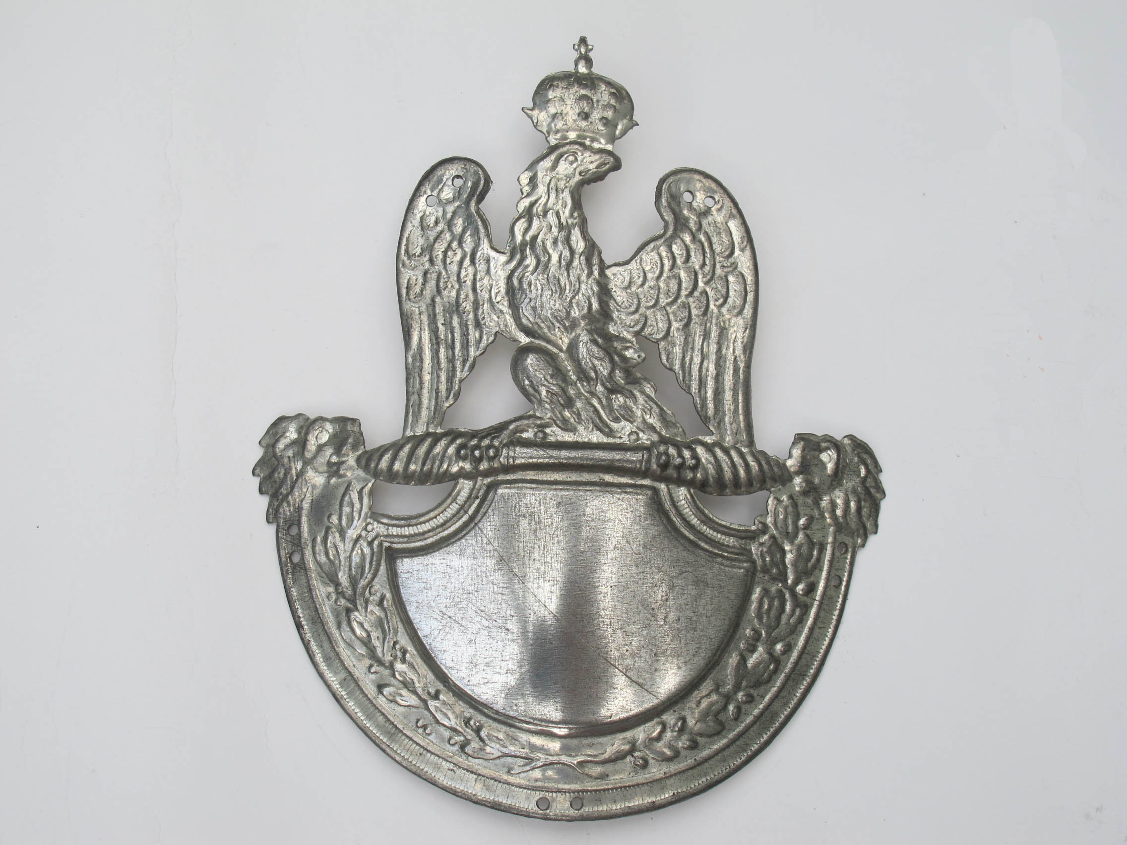 Garde Nationale Du régiment de 1812 Fer étamé estampé.140 mm x 120 mm Prix : 70 €