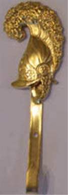 Prix : 18 € |  | 341 | ACCROCHE TABLEAU CASQUE Laiton estampé doré, 85 mm x 38 mm.